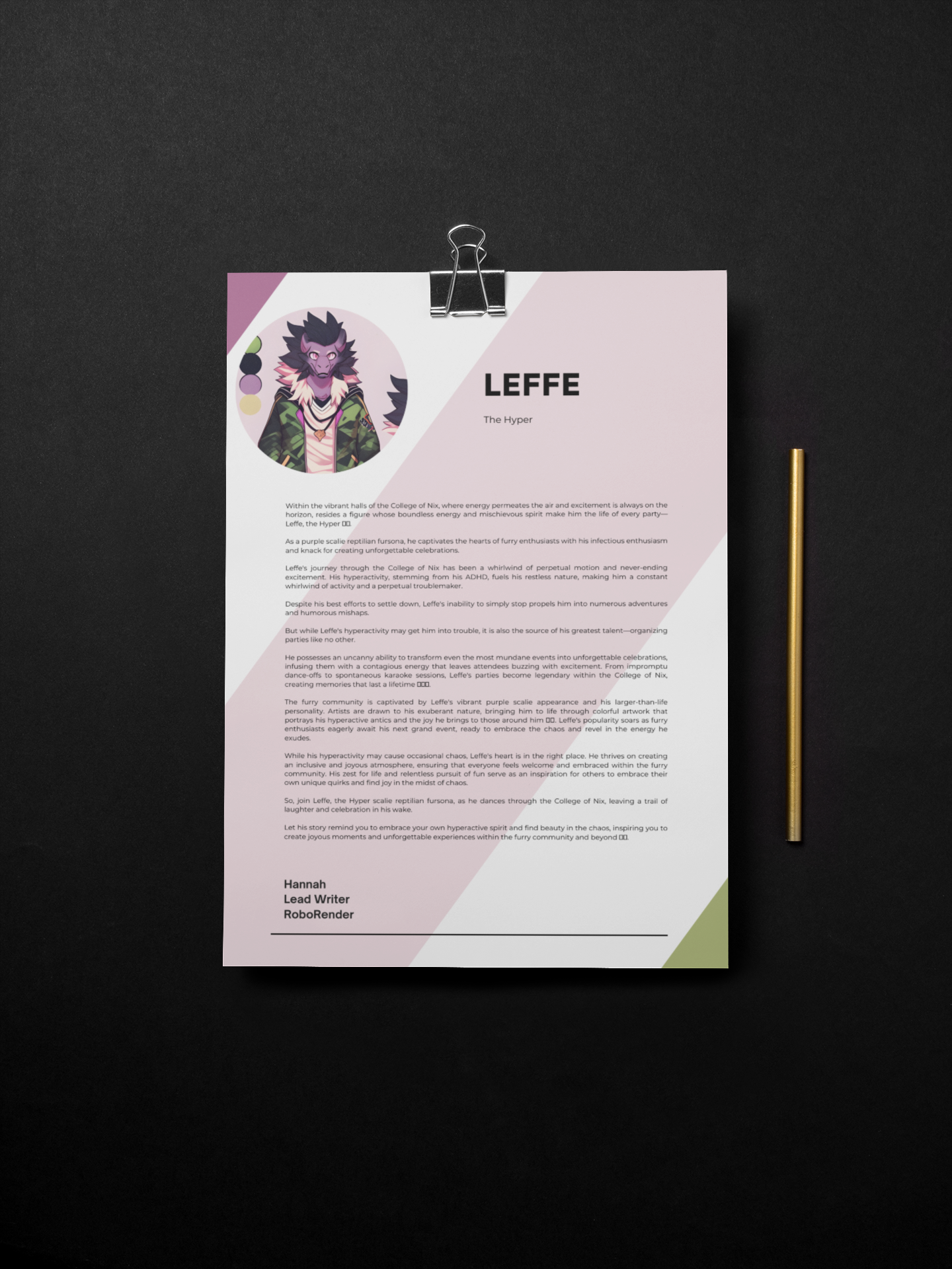 So, join Leffe, the Hyper scalie reptilian fursona, as he dances through the College of Nix, leaving a trail of laughter and celebration in his wake. Let his story remind you to embrace your own hyperactive spirit and find beauty in the chaos, inspiring you to create joyous moments and unforgettable experiences within the furry community and beyond.