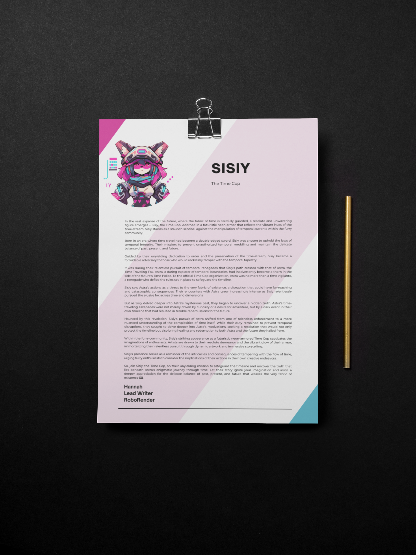 It was during their relentless pursuit of temporal renegades that Sisiy's path crossed with that of Astra, the Time Traveling Fox. Astra, a daring explorer of temporal boundaries, had inadvertently become a thorn in the side of the future's Time Police. To the official Time Cop organization, Astra was no more than a time vigilante, a renegade who defied the rules set in place to safeguard the timeline.